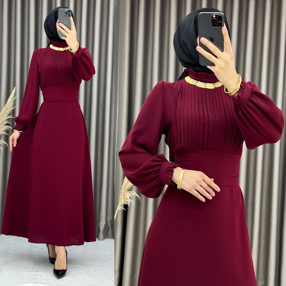 3453 Mosa Elbise Bordo Bordo
