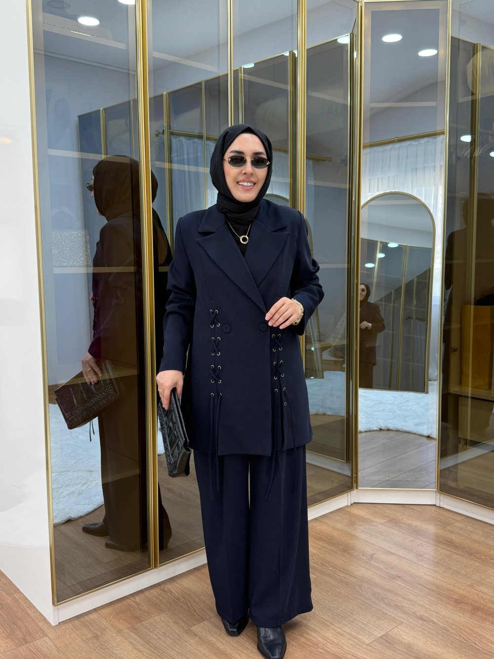 Bağcık Detaylı Ceket Takım Lacivert
