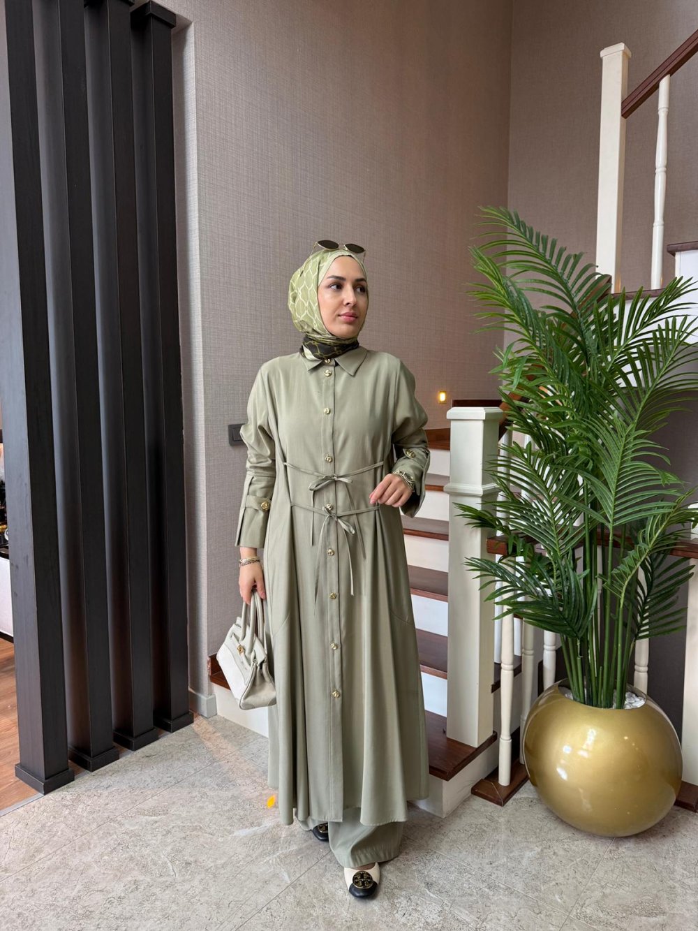 Bağlama Detay Maxi Boy Takım Haki