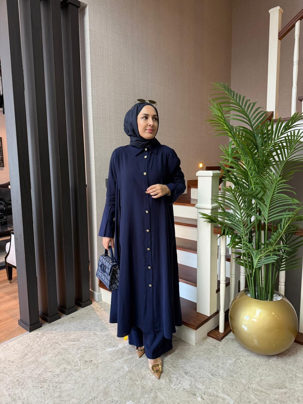 Bağlama Detay Maxi Boy Takım Lacivert