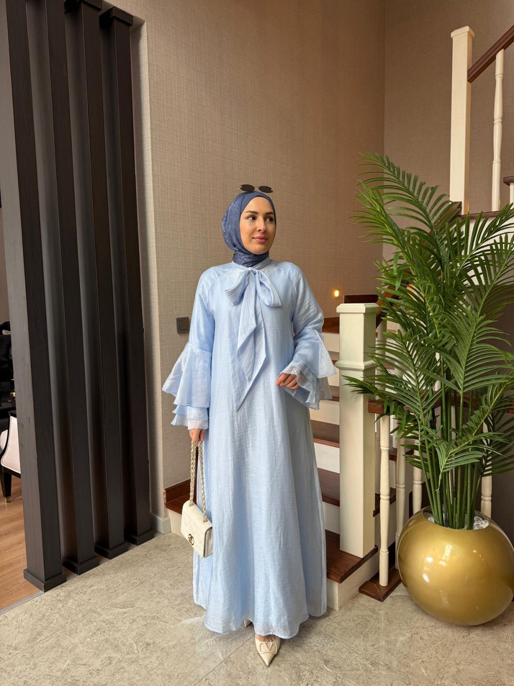 Bağlama Detay Tensel Elbise Bebe Mavisi