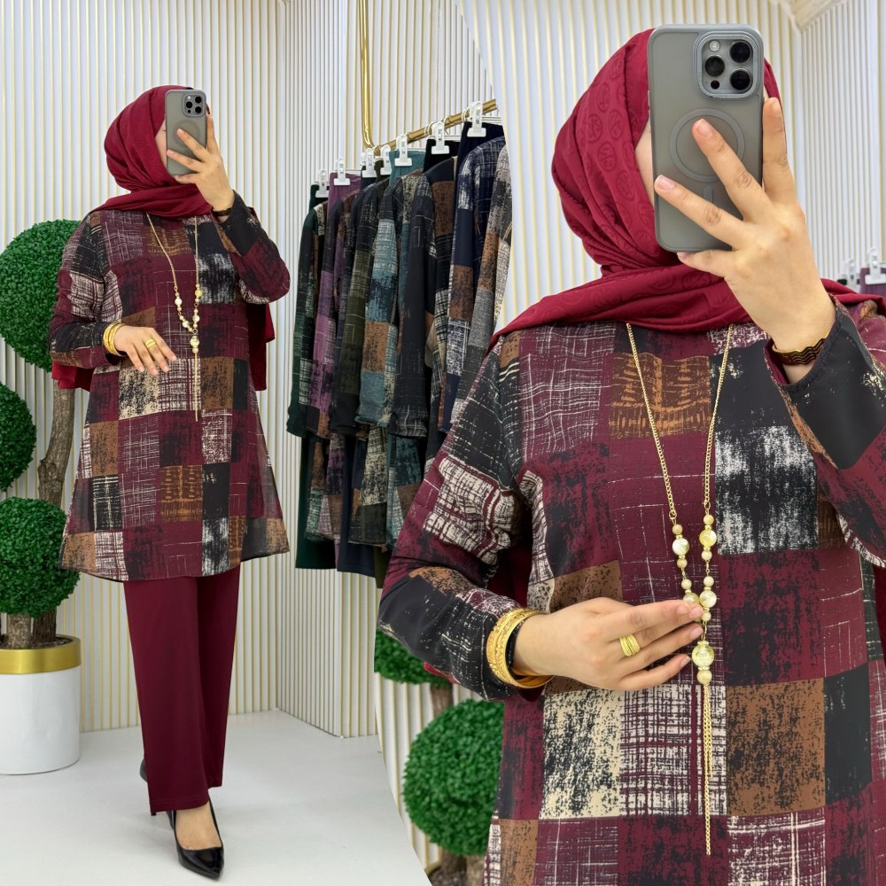 Tunik dijital baskılı şifon içi sandy kumaş