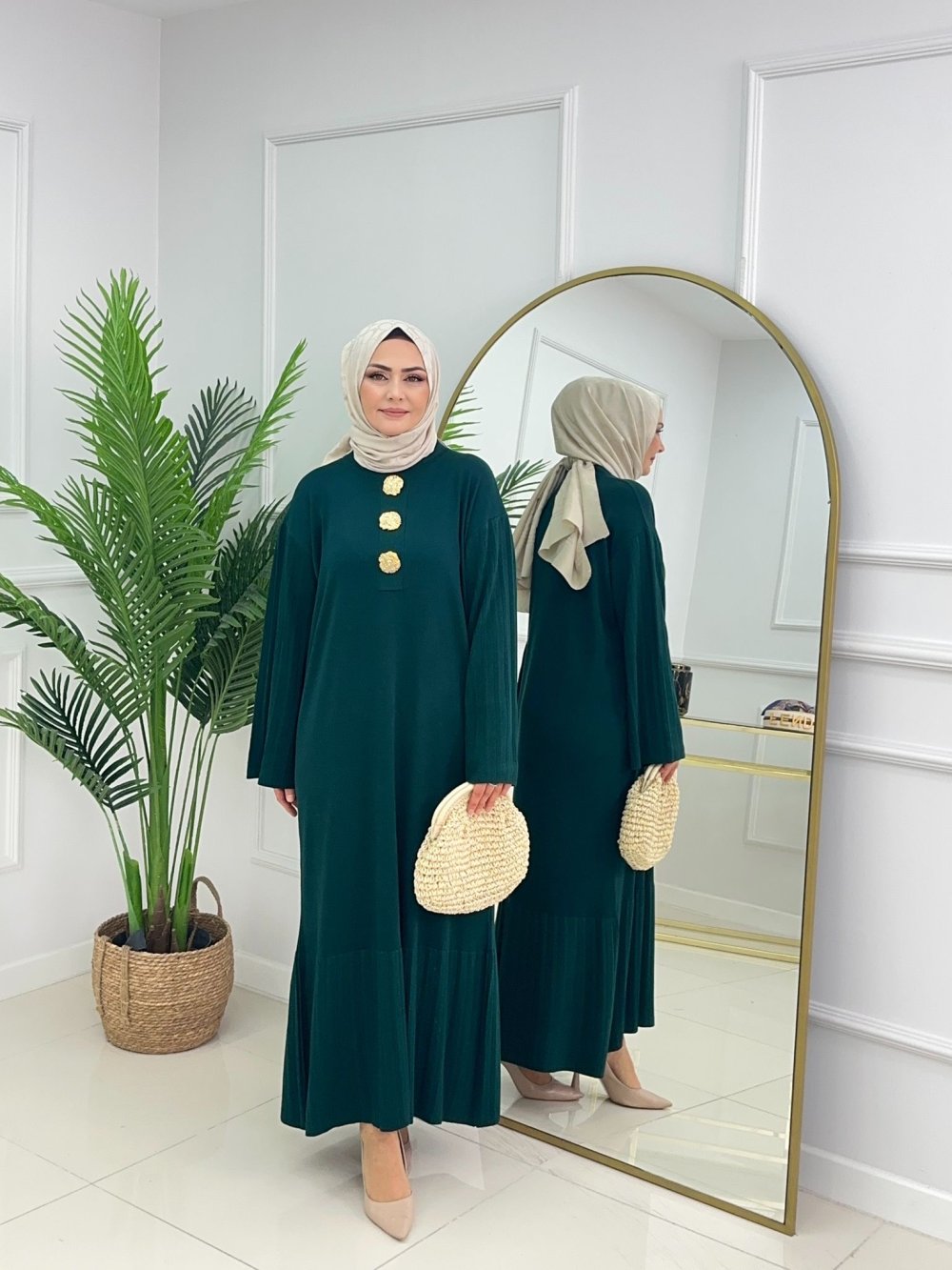 CANSU DÜĞMELİ ELBİSE - ZÜMRÜT