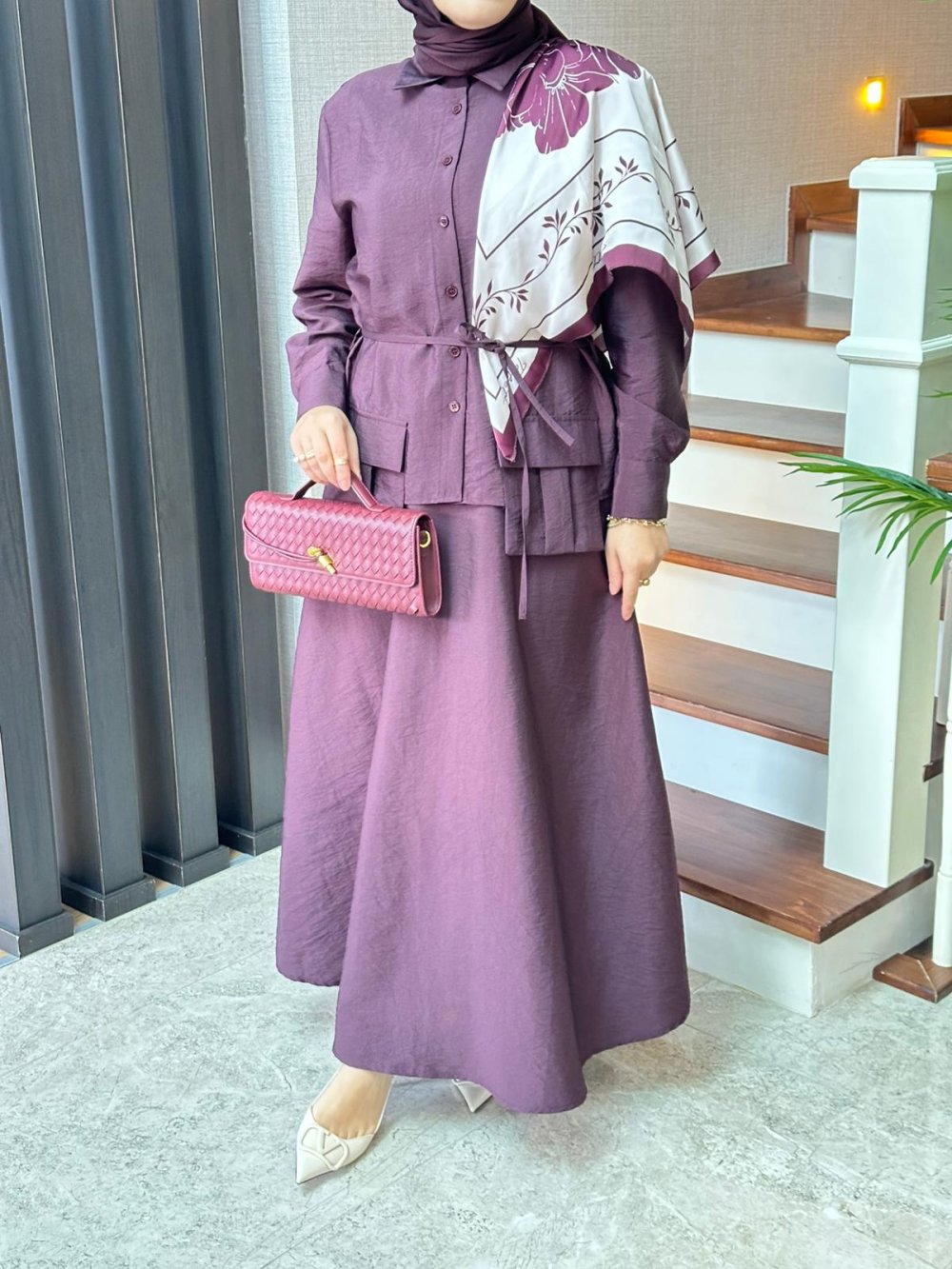 Cep Detaylı Cupra Etekli Takım Mürdüm