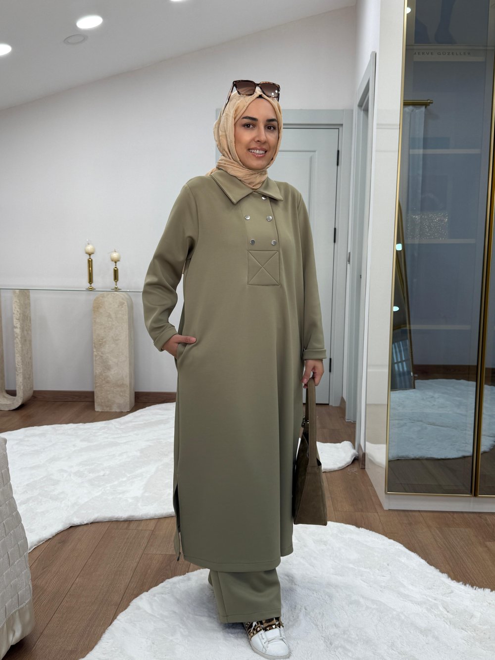 Çıtçıtlı Detaylı Maksi Boy Scuba Takım Haki