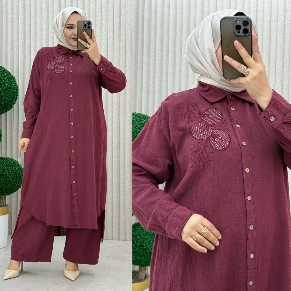 Eliz Pantolonlu Takım Bordo