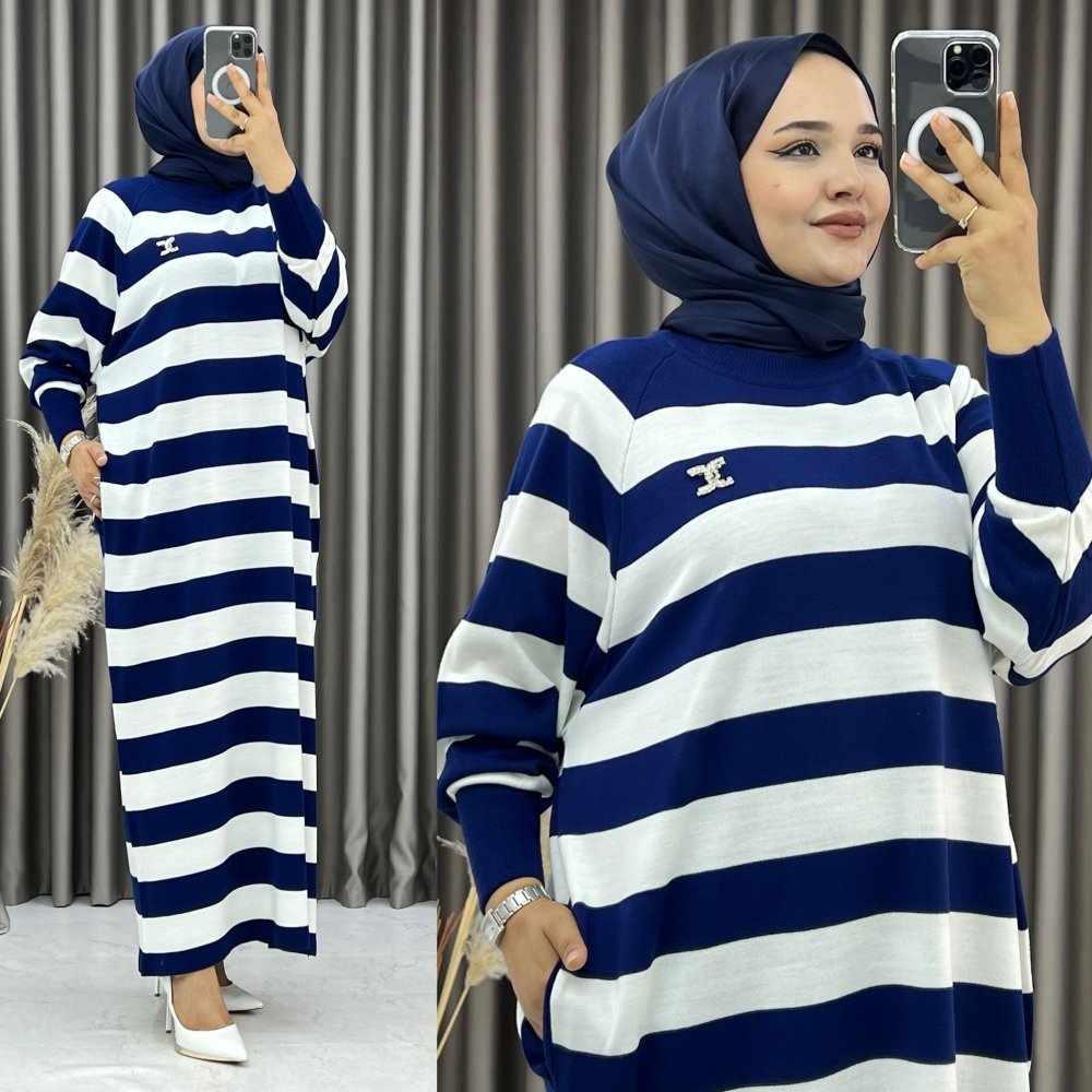 Elya Çizgili Elbise Lacivert Lacivert