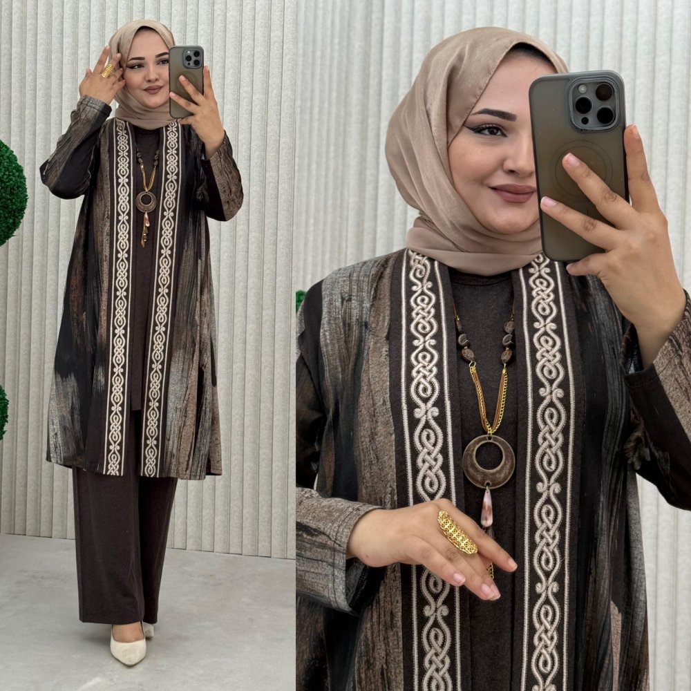 Ferah 3’lü Takım Kahverengi
