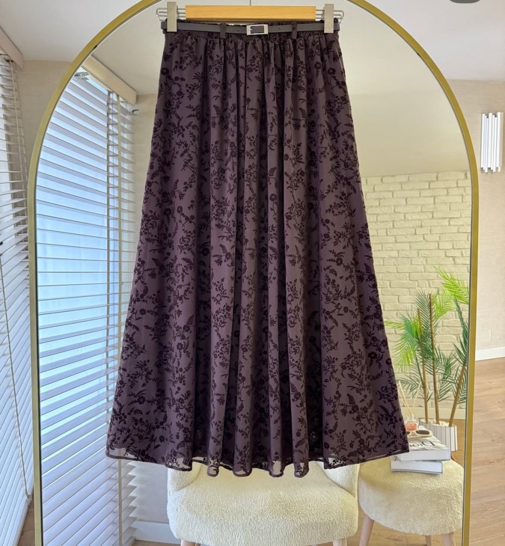 Flok Tül Astarlı Etek Kahverengi