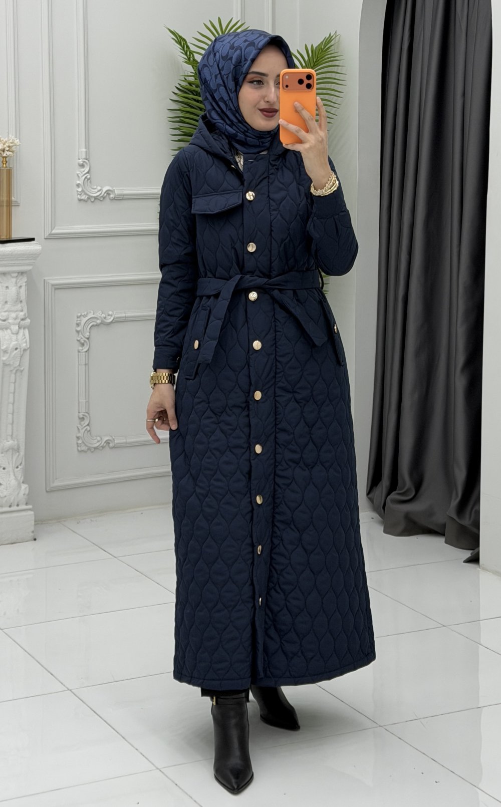 Gözde Kapitone Mont Lacivert
