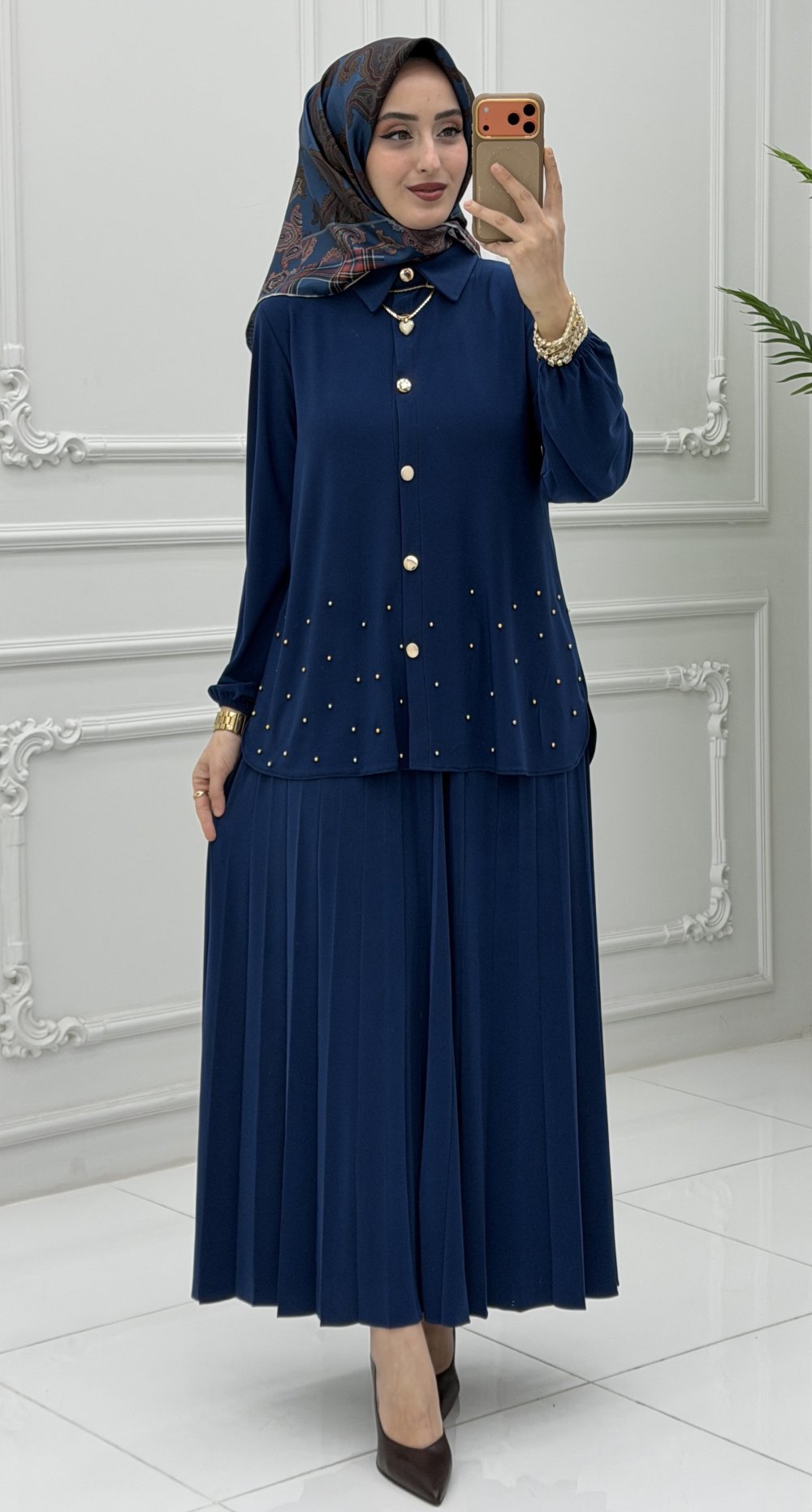 Hesna Etek Takım,hem iş hem de günlük hayatınızda rahatlıkla tercih edebileceğiniz çok yönlü bir parçadır. Şıklığı konforla buluşturan bu tasarım, sezonun en gözde modellerinden biri olacak