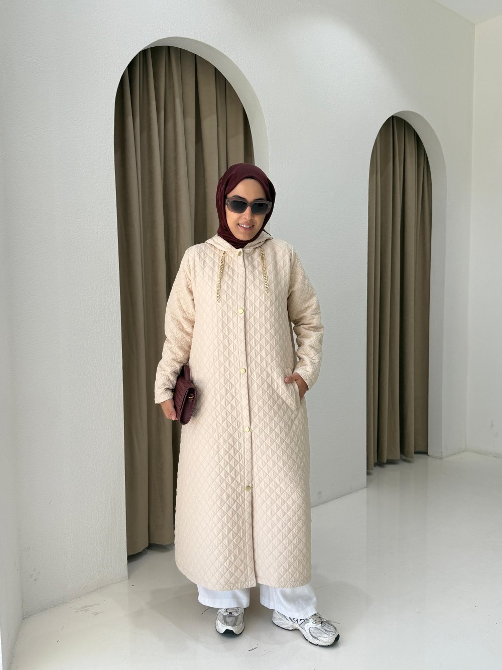 Kapüşonlu Capitone Mont Bej