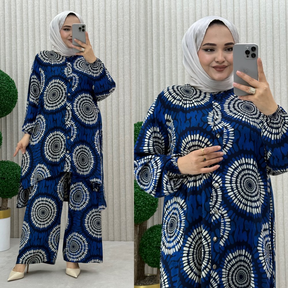 ?46 beden Göğüs 64 cm Tunik Basen 75 cm Pazu 27 cm Pantolon Bel açık 64 cm