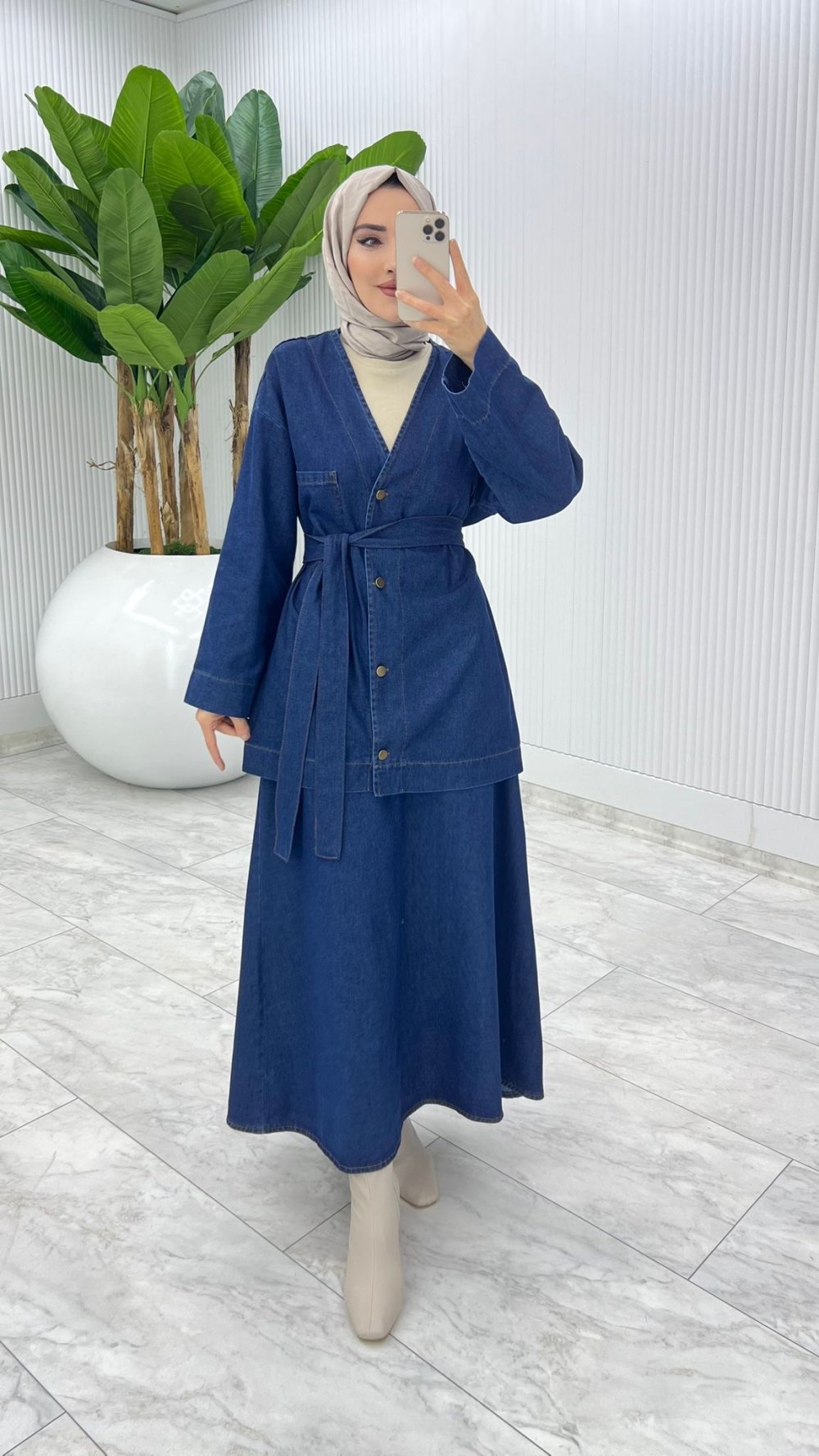 Lacivert Zennub Premıum Etek Takım Tesettür Giyim