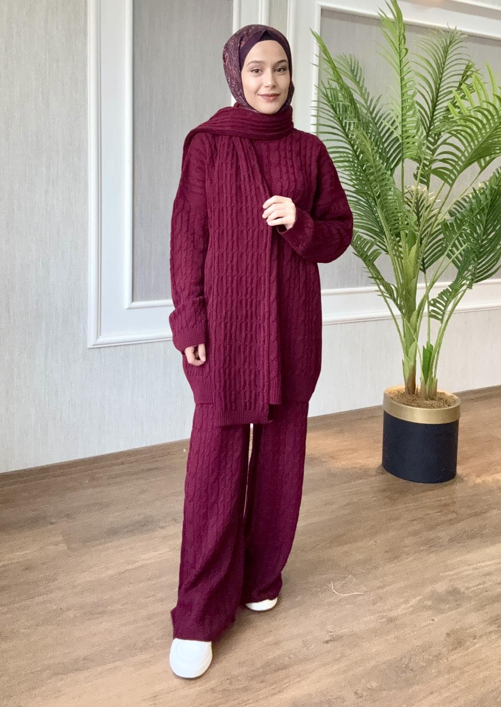 Takım içeriği: Atkı + Tunik + Pantolon (3 parça)