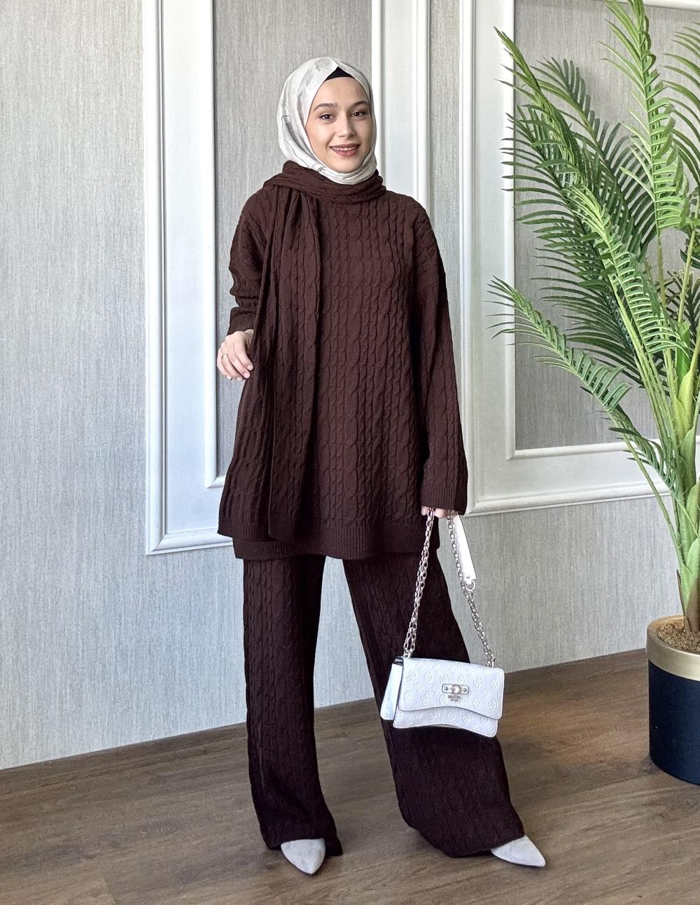 Takım içeriği: Atkı + Tunik + Pantolon (3 parça)
