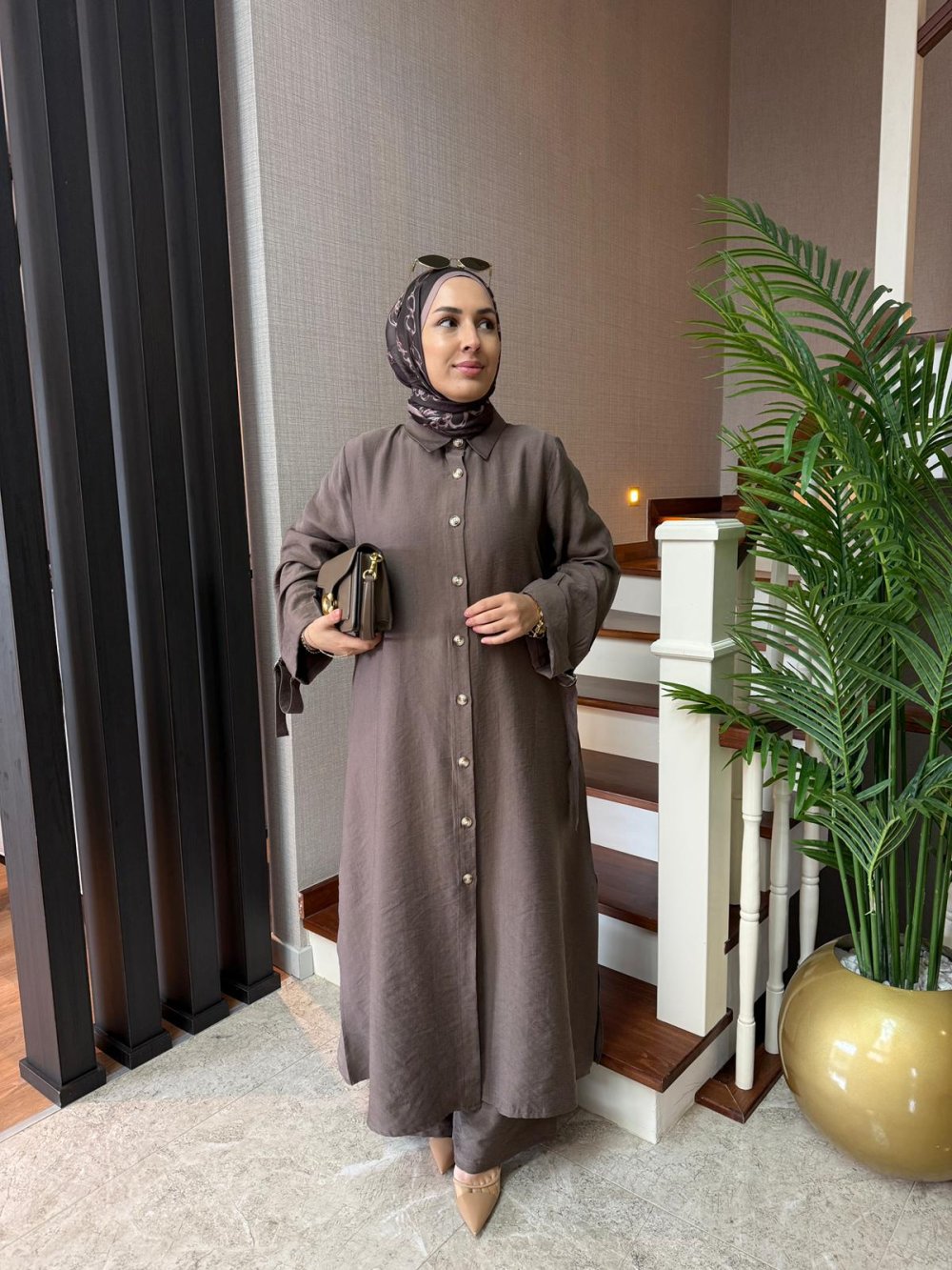 Tunik boy 125 cm’dir. Yanlarda cepleri mevcuttur. Kolları D toka apolet detaylıdır.
