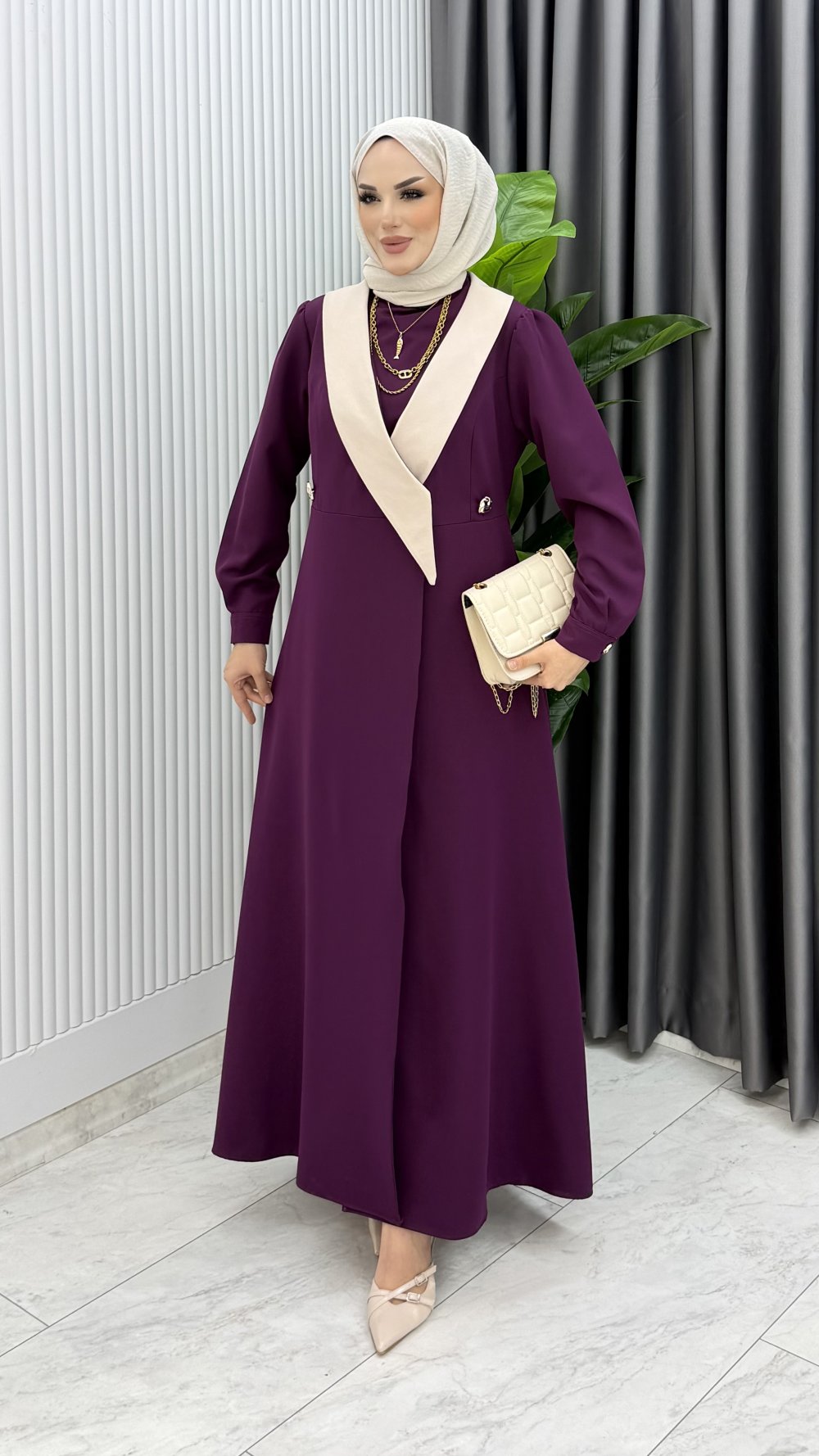 Mürdüm Yeşim Uzun Ceket Kap Ferace Tesettür Giyim