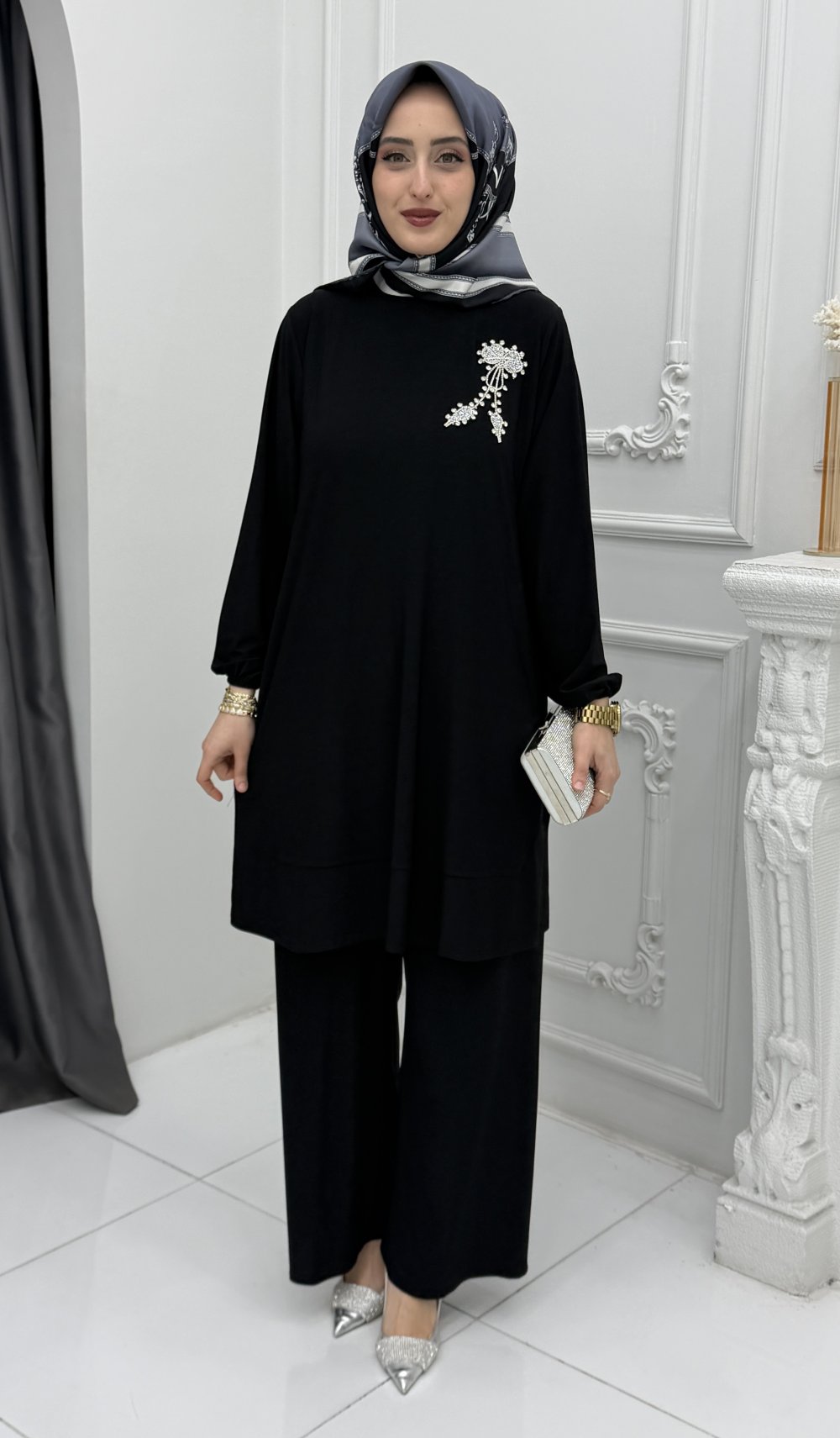 Nilda  Takım, hem iş hem de günlük hayatınızda rahatlıkla tercih edebileceğiniz çok yönlü bir parçadır. Şıklığı konforla buluşturan bu tasarım, sezonun en gözde modellerinden biri olacak!