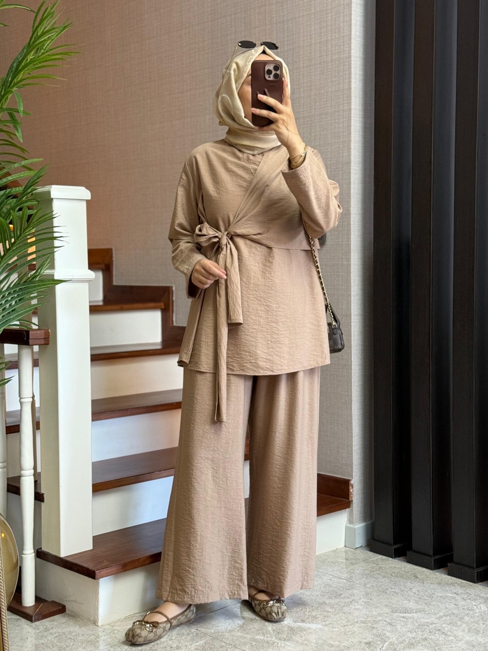 Doğal Dokusu Ve Dengeli Siluetiyle : Önden Bağlama Detaylı Pantolon Takım?