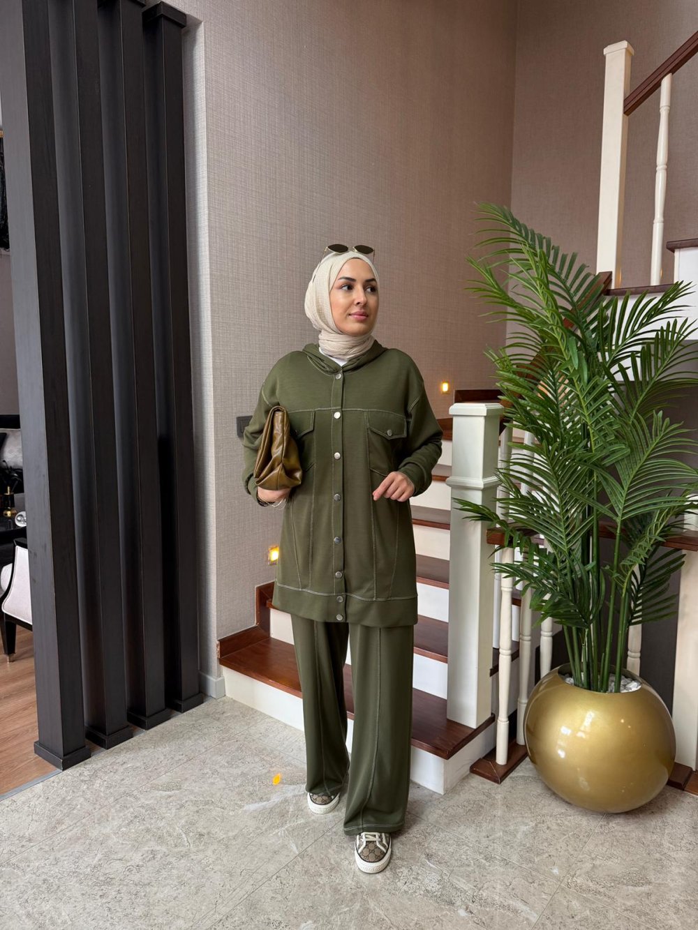 Tunik boy 80 cm’dir. Önden çıtçıt detaylıdır. Kapüşonludur.