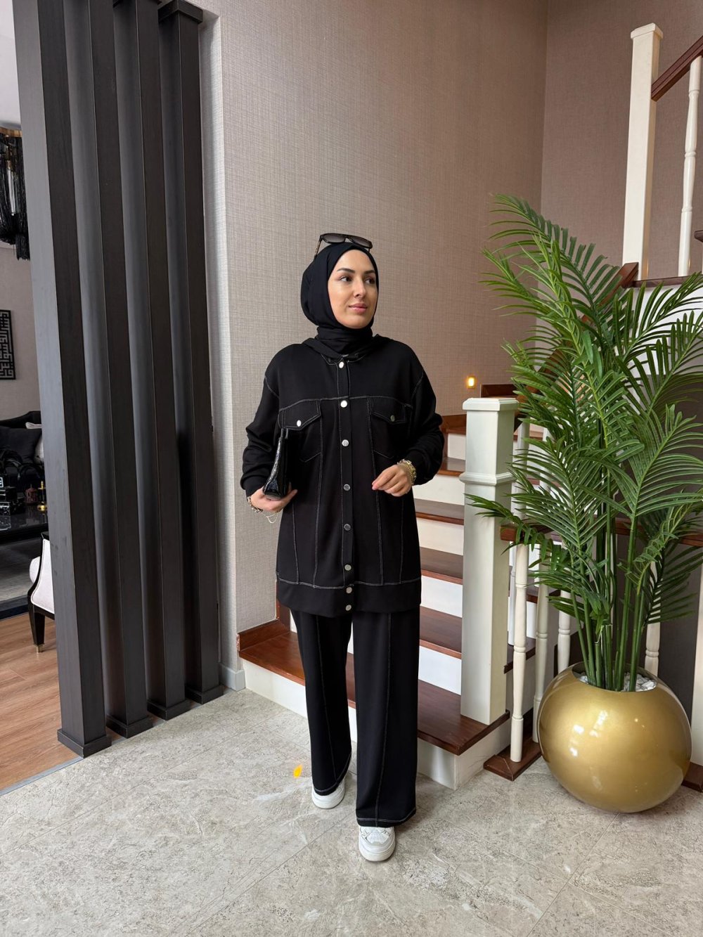 Tunik boy 80 cm’dir. Önden çıtçıt detaylıdır. Kapüşonludur.