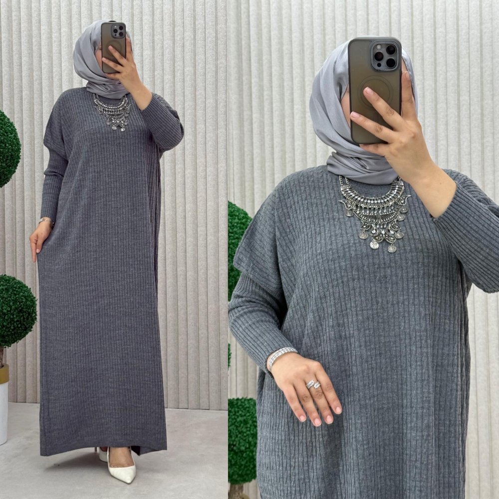 Piraye Triko Elbise Gri
