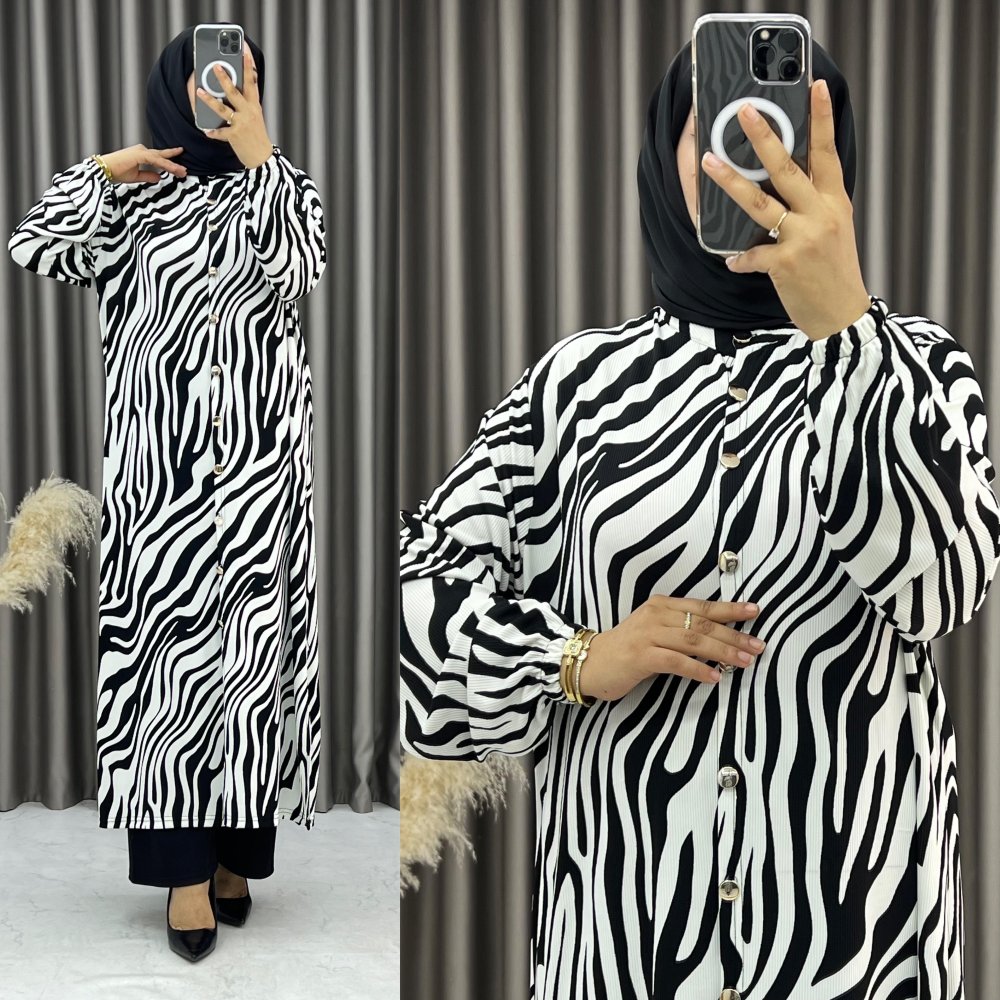 Örme kumaş boydan düğmeli kollar lastikli