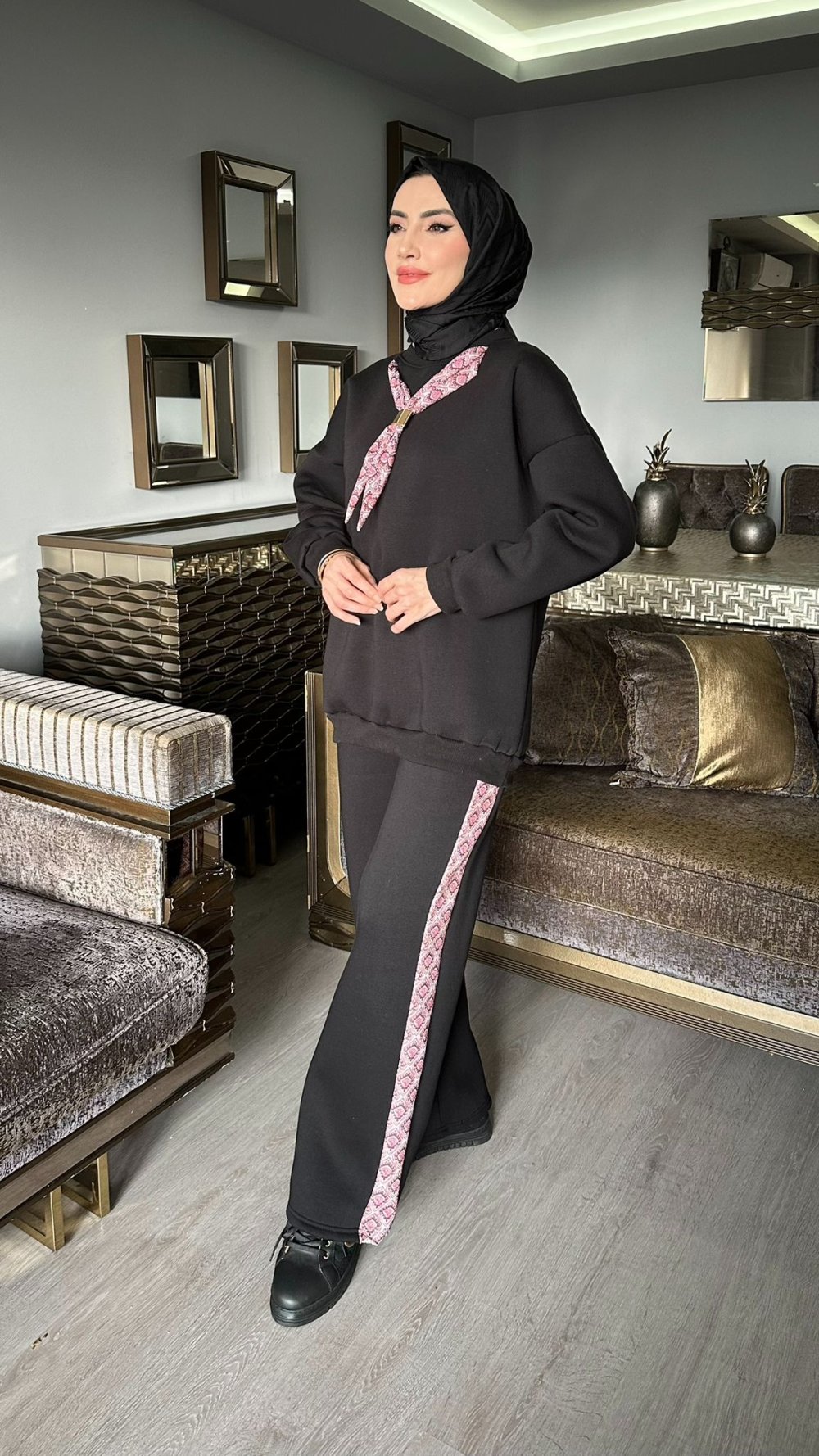 Siyah Premıum Scuba Fularlı Takım Tesettür Giyim