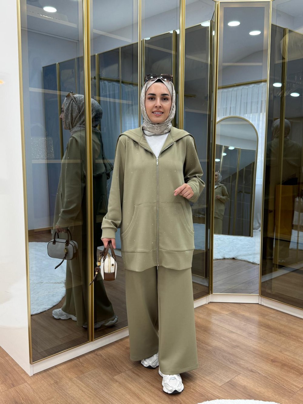 Pantolon eli lastiklidir. Yanlarda cepleri bulunmaktadır.