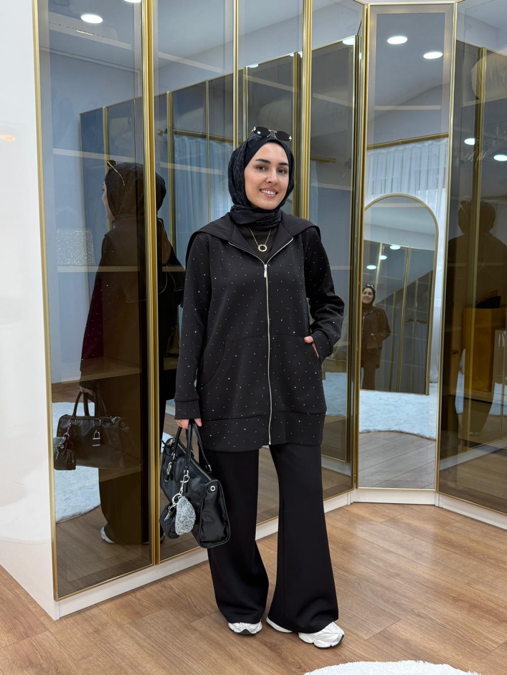 Taşlı Scuba Pantolon Takım Siyah