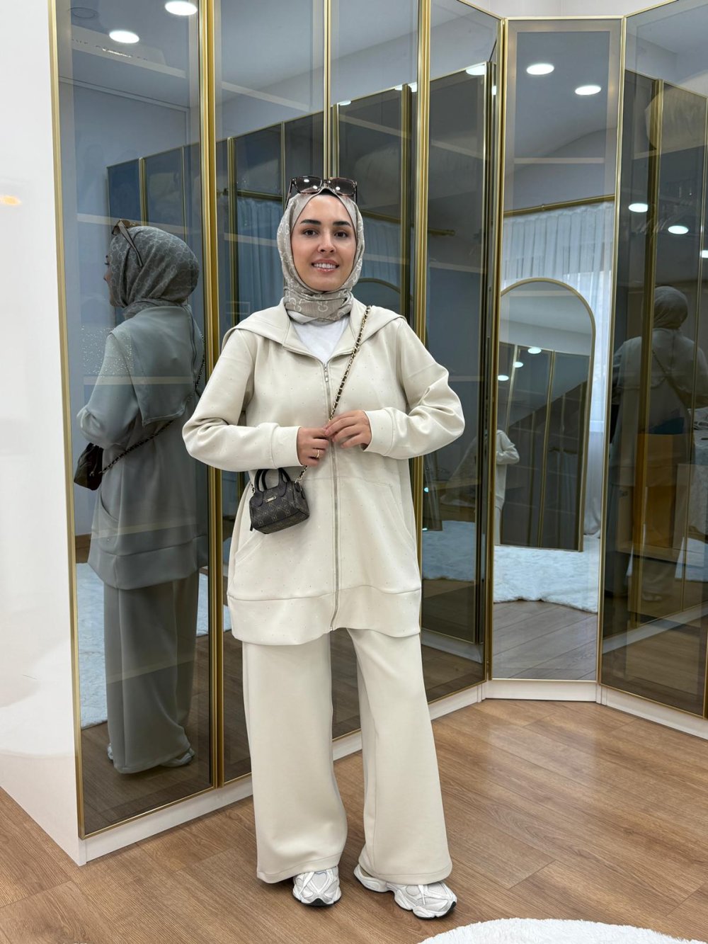 Pantolon eli lastiklidir. Yanlarda cepleri bulunmaktadır.