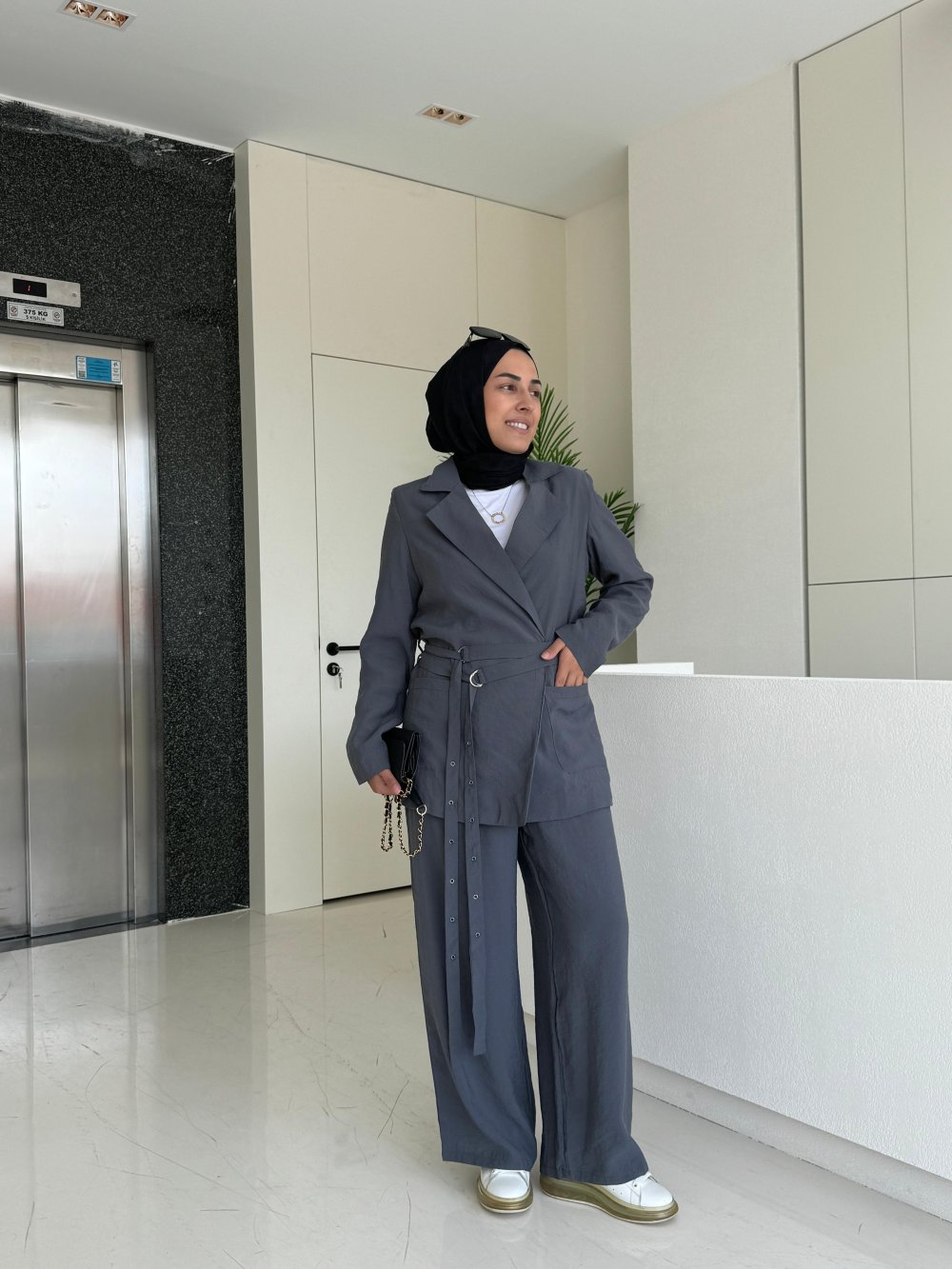 Pantalon ön kısmında fermuar ve düğme bulunmaktadır .Arka kısmı lastiklidir.