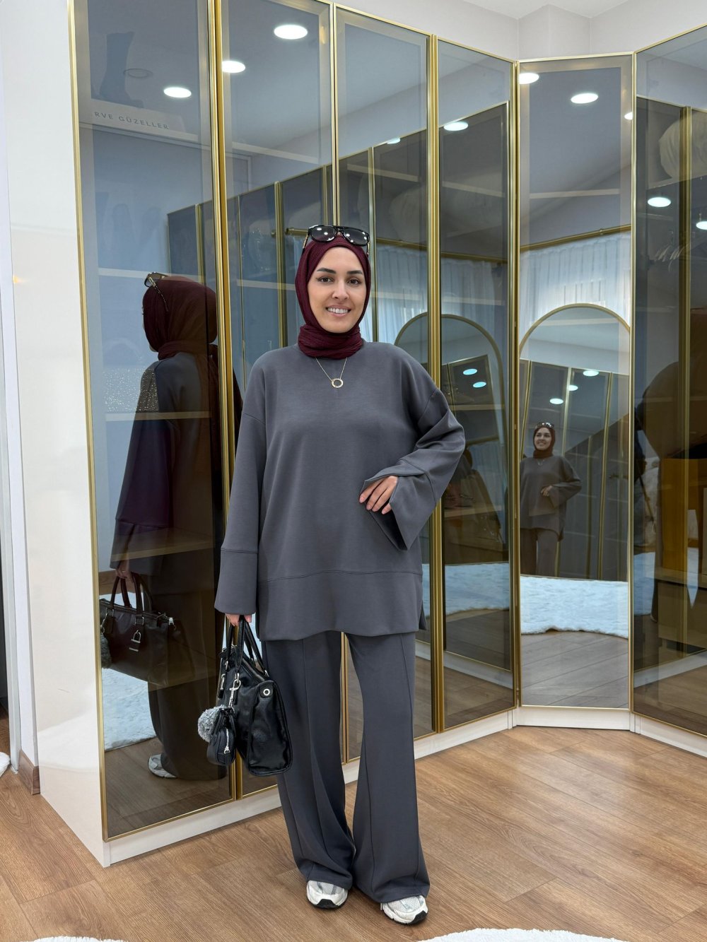 Yırtma Detaylı Oysho İkiiplik Takım Füme