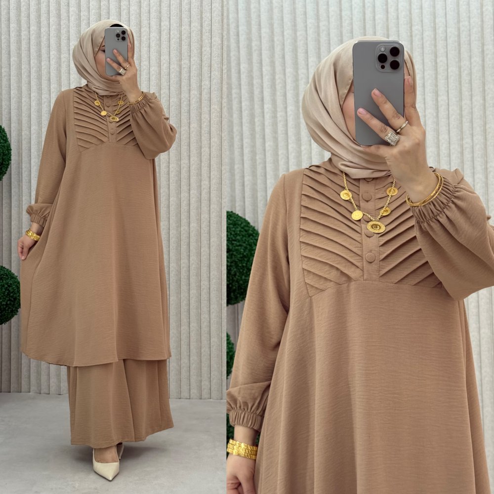 zümrüt pantolonlu takım Vizon